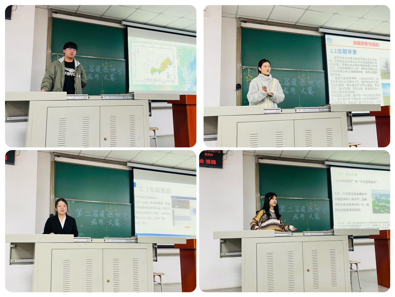 比赛环节,各队代表依次上台从选题背景与目的、数据与技术路线、数据处理流程、过程总结等四个方面展示本队作品。同学们将遥感技术与沙漠治理、水体变迁、城市发展等问题相结合,通过高分辨率遥感影像解译,遥感图像分类和变化检测等数据分析处理方法,探究区域变化趋势和成因,并提出解决方案。评委对各队作品逐一点评。