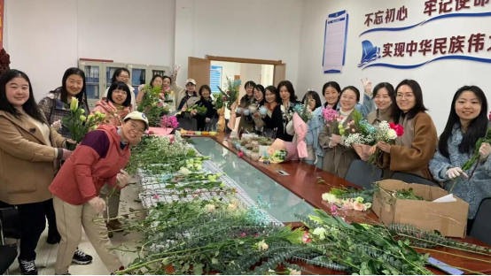 3月8日上午,在学院C101党员活动室,分工会给每位老师准备了一盆可爱的小多肉当礼物,同时,老师们自主学习、巧手修剪、搭配花枝、交流技巧,拿出授课、做科研的专研精神,经过精巧的修饰与加工,在欢声笑语中将各色玫瑰、百合等普通的鲜花变成了令人赏心悦目的艺术品。大家手持自己的作品拍照留念,脸上洋溢着满满的幸福和成就感。