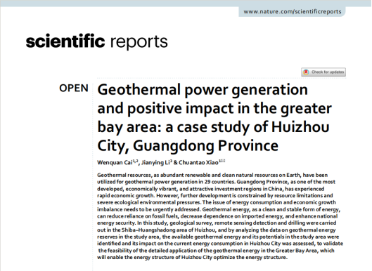 21级硕士研究生蔡文权在《Scientific Reports》上发表题为“Geothermal power generation and positive impact in the greater bay area: a case study of Huizhou City, Guangdong Province”的研究论文。日本无码av