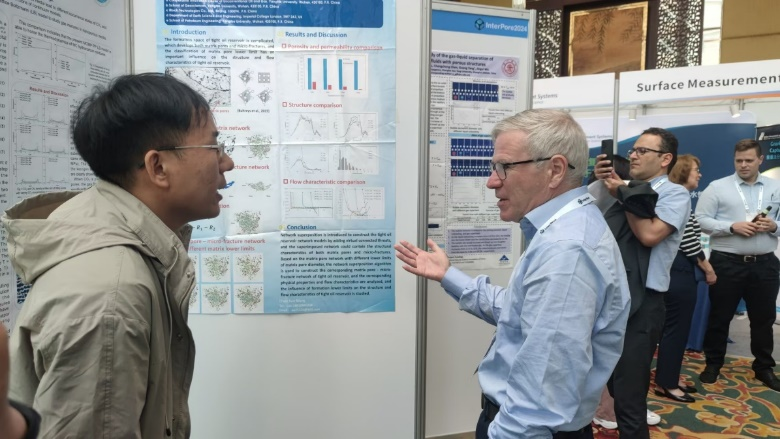 此次会议主题为“多孔介质与生物学”,共设置24个分会场,超过400余位学者作学术报告,展示230多个学术海报,共同探讨多孔介质领域的最新进展,涵盖了多孔介质在能源、环境、生物、农业、材料科学等领域的理论、应用及前沿技术。在为期四天的会议中,我校代表团成员积极参与了各种学术活动。其中,博士生闫康和朱朝彬就其在多孔介质研究领域的最新成果进行了题为“Seepage Model of Conglomerate Based on Deep Neural Network and Finite Element-Discrete Element Coupling”和“Differential Mechanisms of Acidic Fluid-induced Dissolution in Ahe Formation Reservoirs across Various Locations within the Northern Structural Zone of theKuqaDepression”的口头报告,并与现场学者进行了深入交流。其他参会代表也通过会后讨论、海报交流等方式展示他们的研究成果,并与来自世界各地的专家学者进行了深入的学术交流。