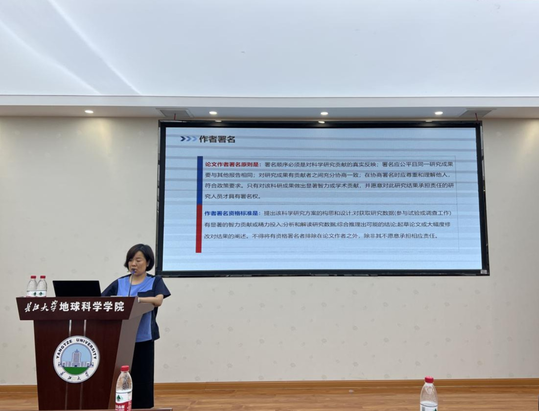 (通讯员 李佩津)5月26日,中国科学院西北生态环境资源研究院文献情报中心期刊编辑出版部副主任、《沉积学报》编辑部主任马素萍应邀做客“地学之光”第365讲,为我校师生带来了一场题为《科技期刊论文写作规范与投稿技巧》的学术报告。此次报告会在石油科技大楼C301举行,副院长江山主持。