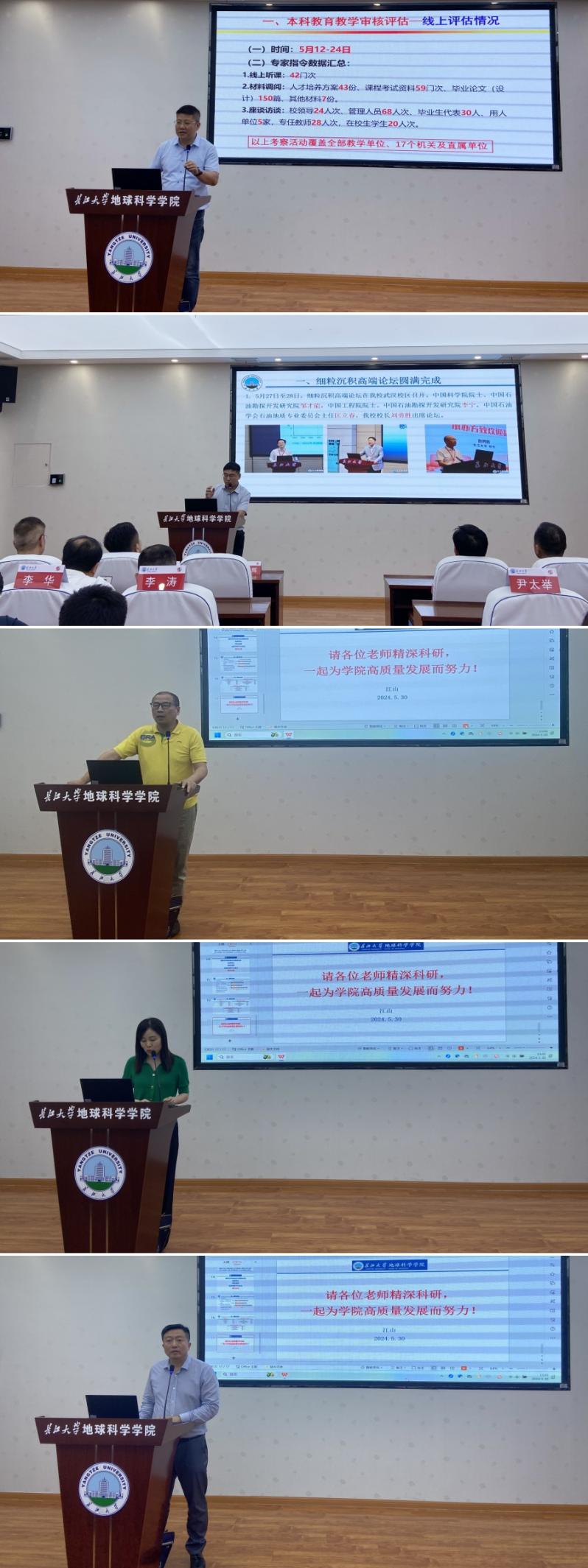 受朱光有院长委托,常务副院长吴楠做了总结讲话,对第七届油气地质大赛的参赛获奖情况以及存在问题、研究生毕业论文外审及答辩、研究生人才培养质量等工作进行了安排和通报;重点强调了学院人才引育的重要性,要求全院教职工参与引才,学院将营造珍惜人才、爱护人才的浓厚氛围,大力实施人才强院战略。全院老师要切实履行职责,努力提高人才培养质量,入选学院青年人才重点培育对象的老师要全力以赴做科研、出成果,要不断提升学术水平,为建设高水平师资队伍贡献自己的力量。