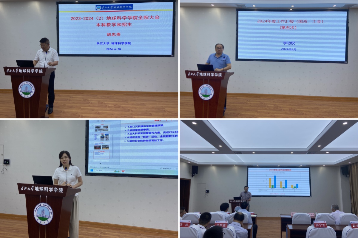 副院长胡忠贵从本科教学常规考核和发展指标2个方面,通报了年度目标考核任务完成情况,对2024届本科毕业论文归档材料收集整理、期末考试监考、全国地质技能竞赛备赛和中国大学生计算机设计大赛备赛等工作进行了详细地安排。