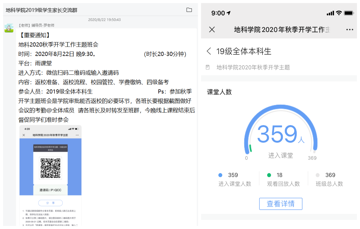 分年级利用腾讯会议或雨课堂召开“2020年秋季开学工作”主题班会,会议由各年级辅导员主持,学工办全体老师参会。主题班会开始前,各年级辅导员先以班级为单位,进行点名和签到,确保所有学生和家长到会。主题班会从返校安排、返校前的准备、报到流程、校园管控三阶段和学费缴纳五个方面展开。各年级辅导员为大家重点讲解了分批返校和校园管控三阶段的具体安排,强调了返校前必须的14天连续健康打和按流程返校,并将“申请—审批”制度的具体做法向学生进行了说明。班会最后,各年级辅导员分别就同学们提出的问题或疑惑一一进行了解答。学生和家长纷纷表示本次班会让大家更加全面了解到学校和学院的整体防控工作,也明确了返校前后需要做的准备,是非常必要的会议。