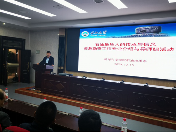 优良传统的继承,张昌民教授作为名师代表,向在座新生讲述了个人成长背景和我国油气行业的发展和前景等,并向学生们介绍了从学校走出去的一批优秀校友如王铁冠、邓运华院士的相关事迹,用这些优秀校友事迹勉励学生们努力学习、积极向上,争取成为优秀的石油地质工作者。听完张昌民教授的介绍,学生备受鼓舞,更加坚定了从事石油地质的决心与信心。