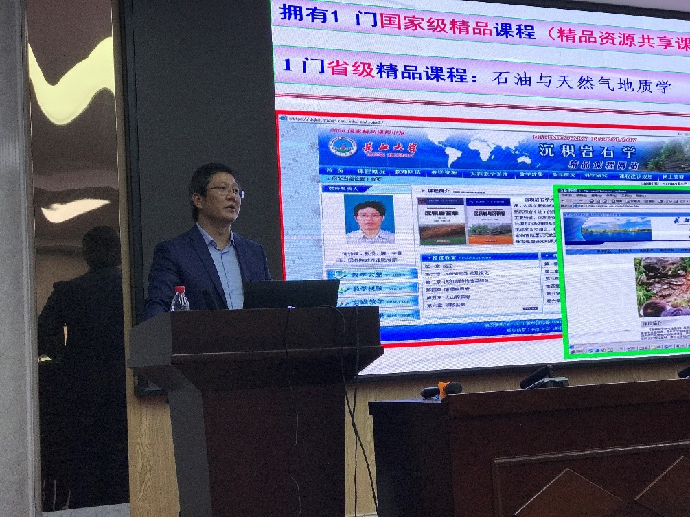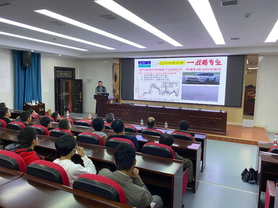 在资源勘查工程专业介绍与导师组活动中,陈轩副教授首先从“资工专业主要研究内容、资工专业怎么样、资工专业的人才培养体系”三个方面向同学们做介绍,随后用“亦师亦友”引出“导师组”活动的作用及意义。最后,张昌明教授用个人成长经历和学科优秀校友的事迹,勉励同学们要勤奋钻研,争取成为优秀的石油地质工作者。