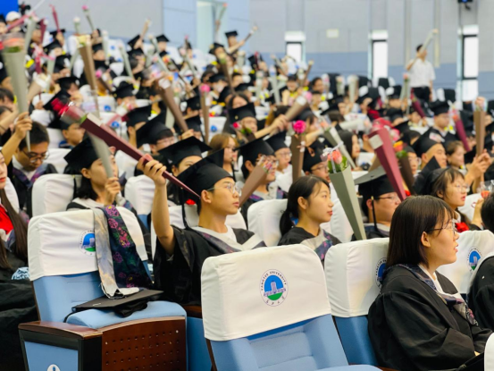 在热烈的掌声中,胡明毅院长、学术委员会主任李少华、教学委员会主任肖传桃、系主任李功权、胡忠贵、陈轩六位导师上台就坐。党委副书记任倩、各年级辅导员、部分学生家长来到典礼现场,共同见证这一难忘时刻。
