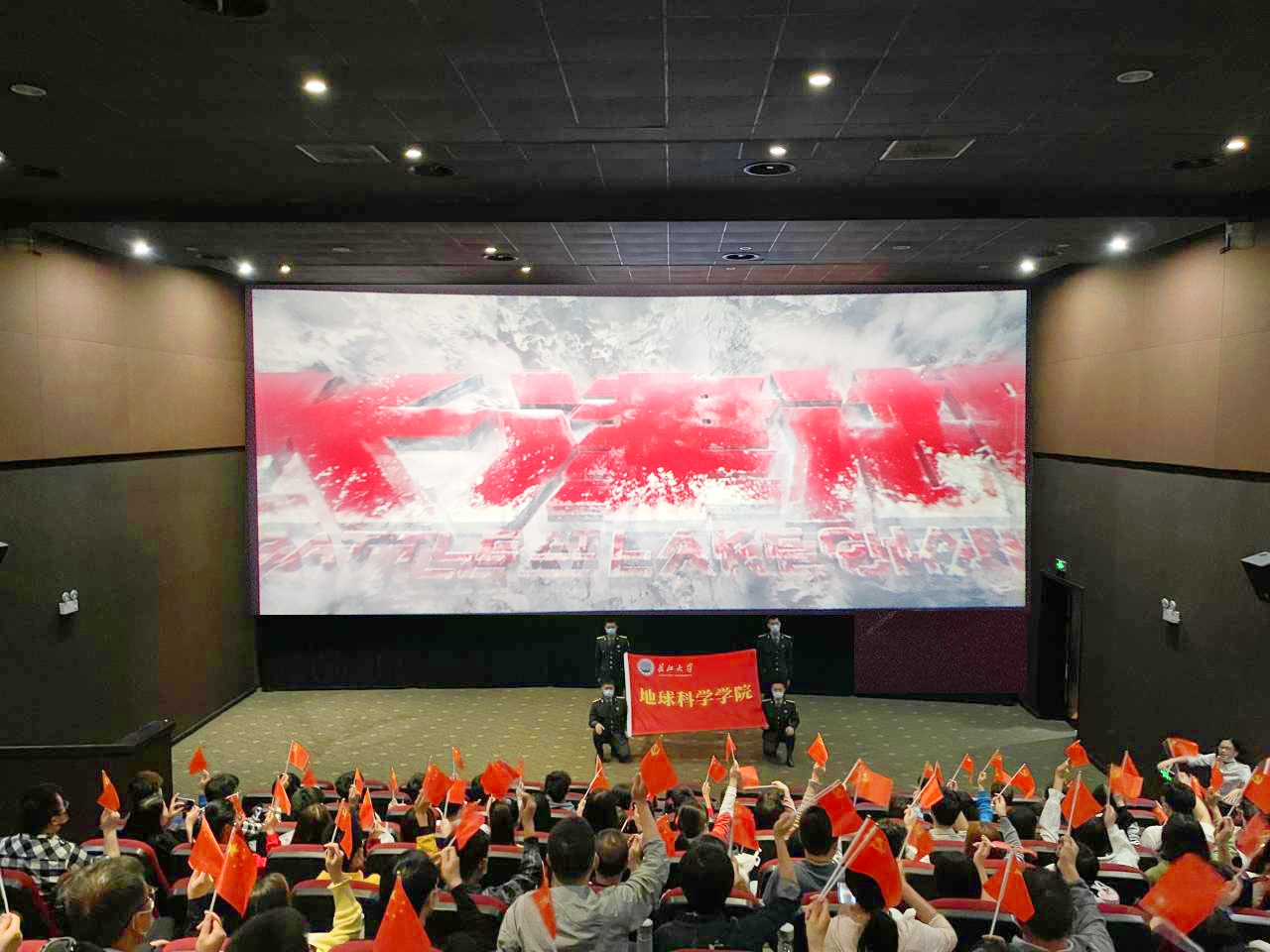 观影现场,荧幕上战士们缺衣少食,艰难挺近,不仅在与敌人作斗争,也在与老天作斗争,与自己作斗争,一帧帧惨烈的战斗场面,一个个战士的倒下,师生们仿佛回到了那个战火纷飞的年代,热泪盈眶。