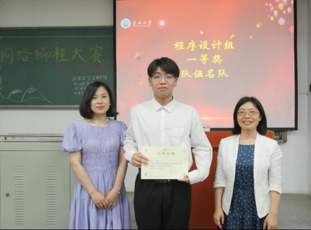 随后,蔡永香老师进行致辞总结,蔡老师对所有选手的表现表示赞许,并做出了中肯的评价,希望同学们加强自身的创新创造能力,积极主动学习新技术、新知识,不断提高自身的动手实践能力。最后,老师们为获奖队伍颁奖。