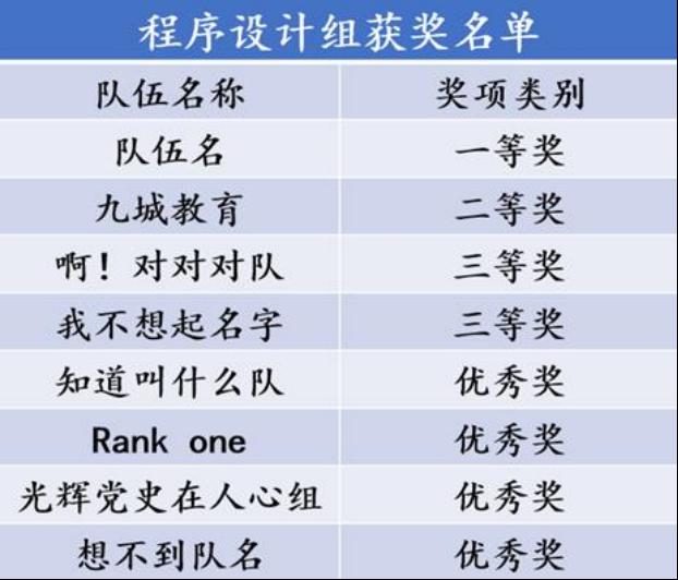 图4 程序设计组获奖名单