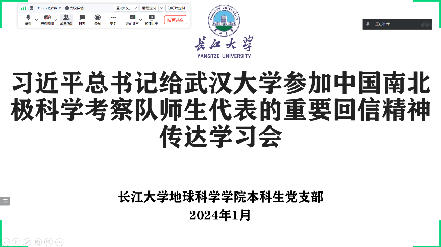 通过线上、线下结合的方式,召开习近平总书记给武汉大学参加中国南北极科学考察队师生代表的重要回信精神传达学习会,全体本科生及创新理论学习小组成员参加本次大会。
