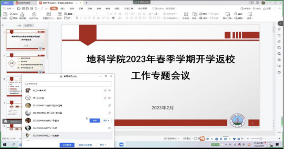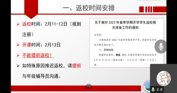 2023年春季学期开学返校工作专题会议”,主题班会由各年级辅导员负责。