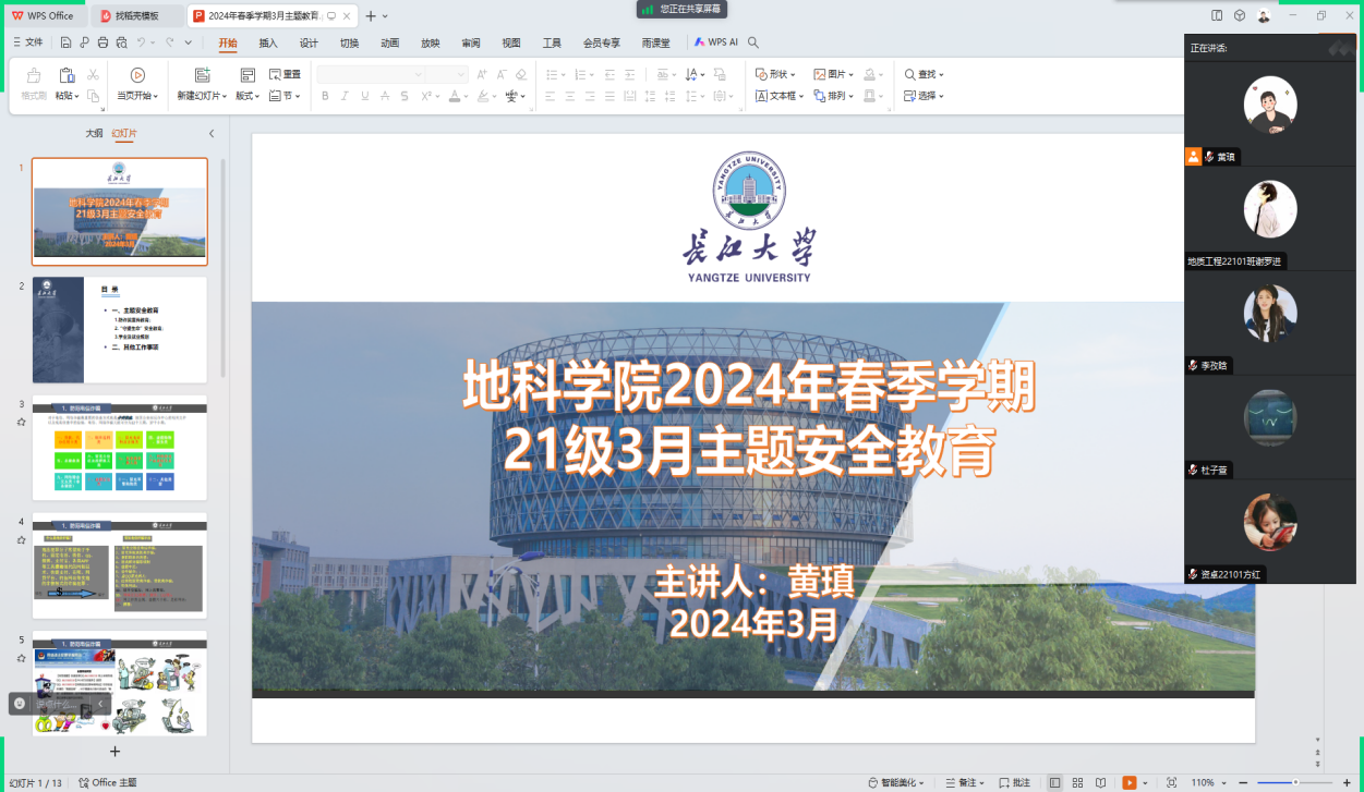 随后,在“守望生命”安全教育部分,老师们首先向大家强调离校必须请假,如因出差、联培、延毕、考试等原因需离校,必须找辅导员办理请假手续,安全第一位。紧接着从防盗、消防、维护国家安全、校园内部交通、防外部滋扰以及网络安全六个方面入手,通过讲案例、看视频,提醒学生吸取经验教训,牢记辅导员、班主任及校园报警求助电话,遇到任何安全问题应及时与老师、学校联系,时刻注意保护自身安全。