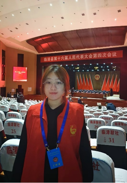 图 2 李晓雨参加临漳县“”两会”志愿服务