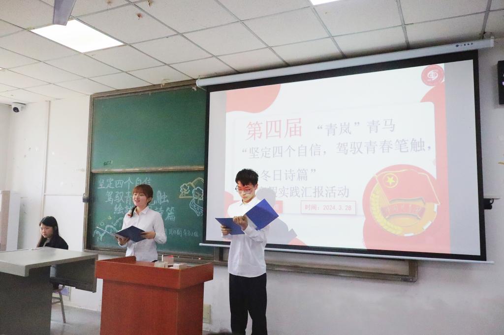 “青岚”青马学习小组于寒假期间开展了主题为“坚定四个自信,驾驭青春笔触,绘就冬日诗篇”实践活动,取得良好效果。3月28日中午,“青岚”一组成员在武教A105开展了寒假实践成果汇报展示,学工办王红桥老师、黄瑱老师、姚佳老师、乔宇老师等参加。