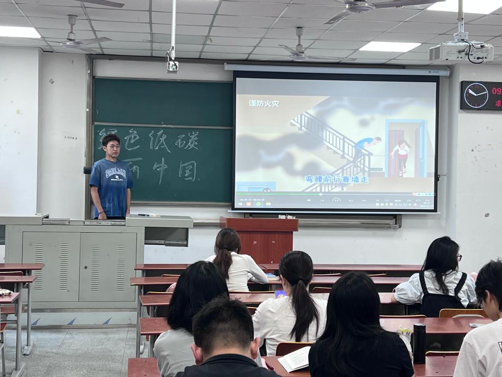 于5月13日至19日组织各班级开展以“绿色转型,节能攻坚,绿色低碳,美丽中国。”为主题的教育班会,会议由班主任主持。