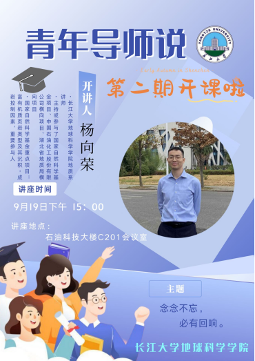 在石油科技大楼C202会议室召开地科院导师组系列活动之“青年导师说”座谈会(第二讲)。座谈会由杨向荣老师主讲,前期通过自主申报同学参加了座谈会。座谈会由学工办乔宇老师主持。