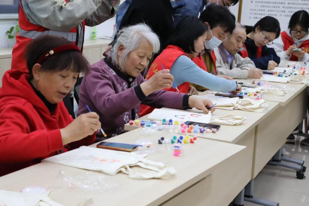 与传媒学院联合高湖社区,共同举办了“绿绘高湖 志愿同行”环保袋绘画活动。此次活动以创意绘画为载体,通过手绘环保袋的形式,传递绿色生活理念,吸引了社区老年朋友及志愿者们的积极参与。