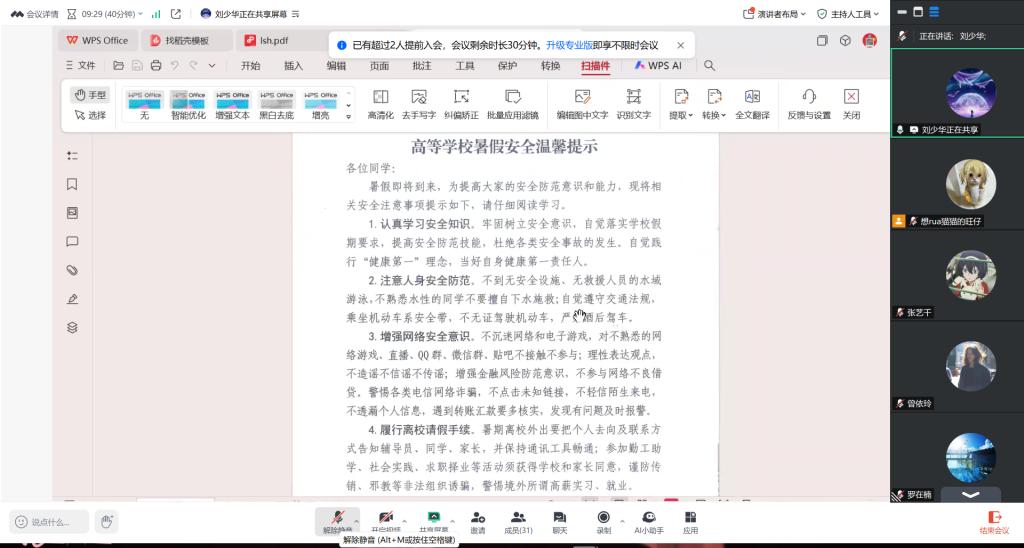 目前,学院已按要求完成班会记录、学生去向登记表、留校情况汇总表等材料。暑期将持续通过线下值班、线上沟通等方式保持信息畅通,切实做到学生安全管理“不断线”,为9月顺利返校做好前期准备。