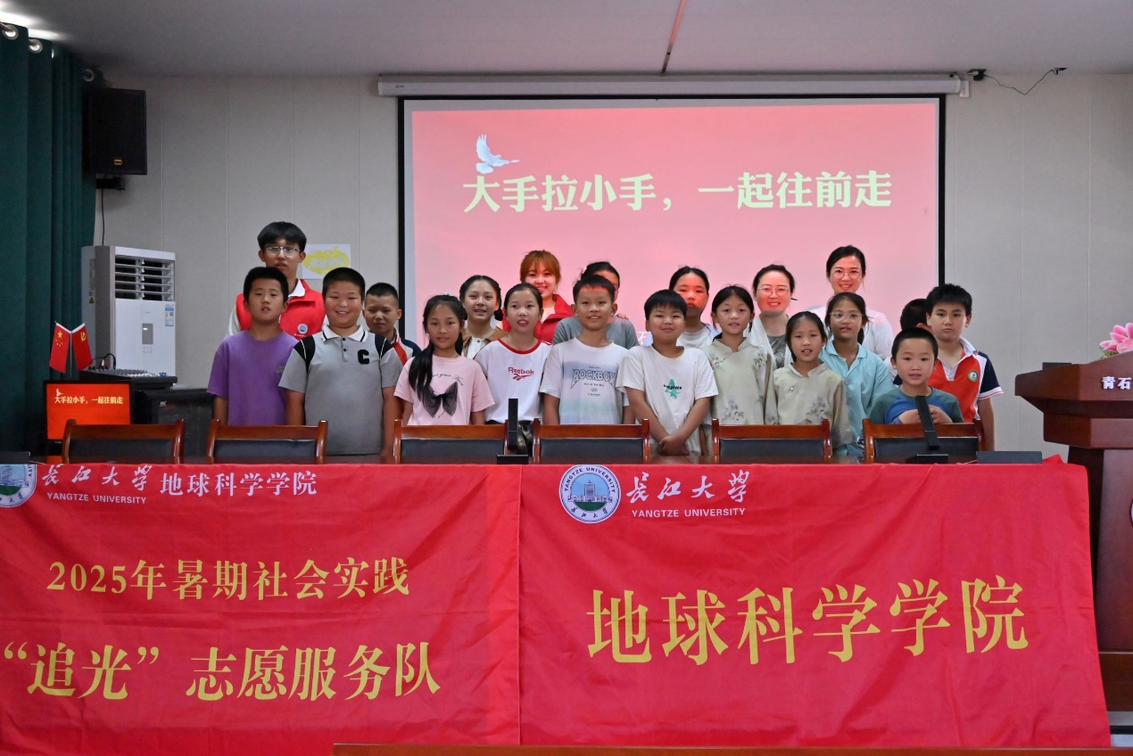 “追光”志愿服务队,为社区和乡村儿童带来了妙趣横生的地学科普课。通过化石对比、趣味实验与手工创作等方式,让孩子们在轻松愉快的氛围中收获知识,同时探索地球中蕴含的奥秘。