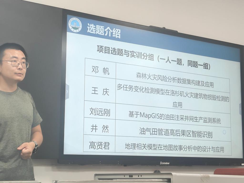 两周在校集中学习结束后,同学们线上学习停步,各项目持续深化,远程讨论与协作成为常态。刘远刚老师指导小组基于前沿技术构建油田注采井网监测预警系统,通过定期线上会议协调接口兼容与模型优化,实现了从数据管理到智能预警的全流程开发;邓帆老师小组整合多源地理数据,构建森林火灾风险数据集,为灾害预警提供数据支撑;高贤君老师引导学生探索地理模型与地图叙事的融合应用,提升理论结合实践的能力。目前,各组已进入总结阶段,即将返校进行成果汇报与经验交流。