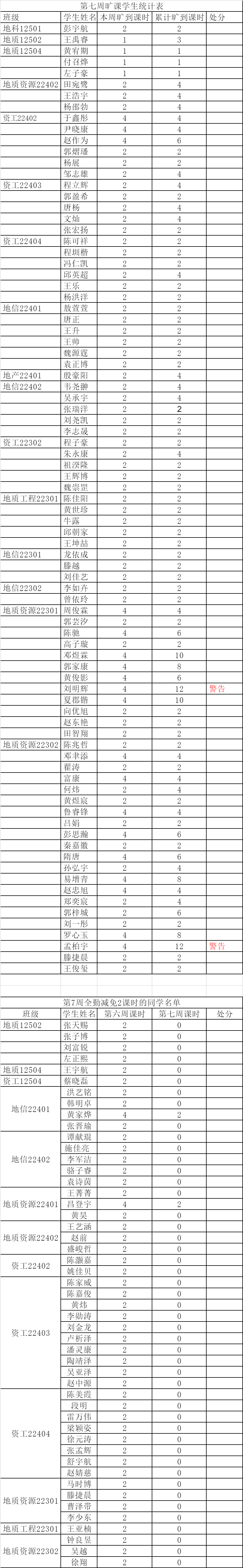 持续开展常态化课堂考勤工作。现将第七周考勤情况通报如下: