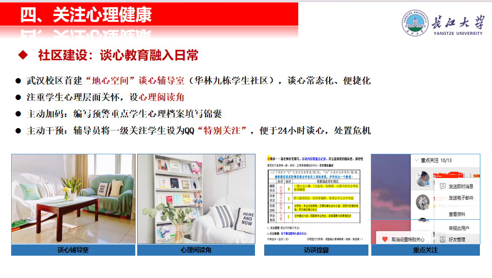 在“家校协同育人”方面,会议重点强调了毕业阶段学生可能面临的心理压力与挑战,从学业、就业、人际关系等多角度分析成因,呼吁家长注重情感支持与理性引导,避免过度施压。学院也分享了在校心理辅导资源,如“地心空间”谈心室、心理档案预警机制等,希望通过家校密切沟通,共同守护学生心理健康,实现“内紧外松”的关怀格局。
