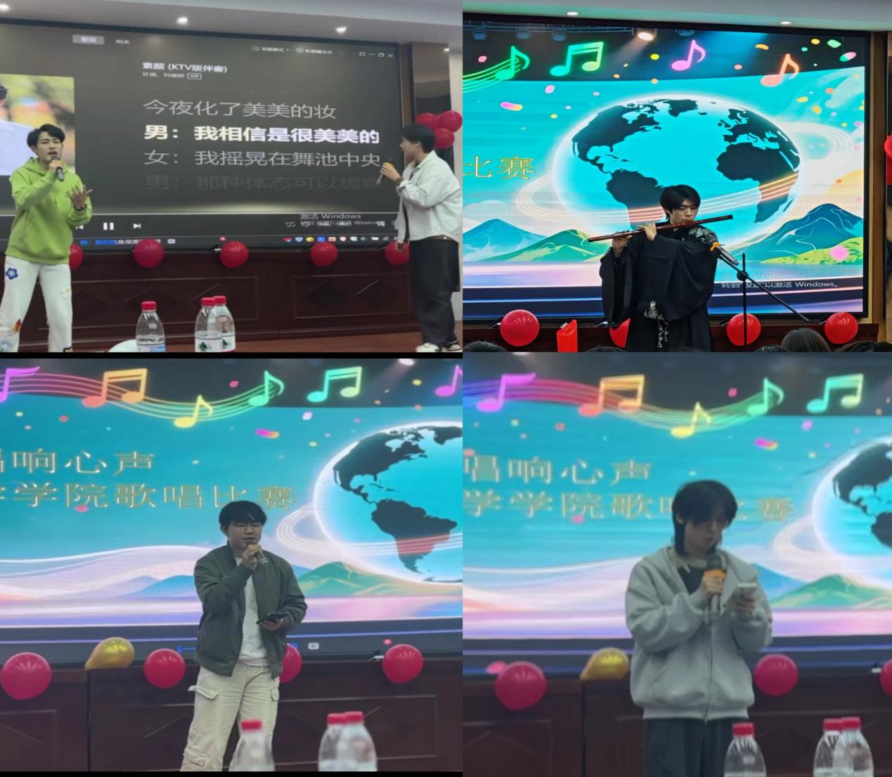 学生会、研究生会联合举办的歌唱比赛在此举行,学工办王红桥、毕浩浩、赵娥老师与学生会、研究生会的主要学生干部担任评委。陈一博、田宛鹭担任主持人。