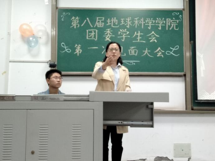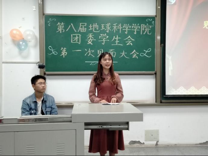 举行第八届学生会第一次全体例会于教学楼A栋103举行。本次大会出席的人员有地科院党委副书记任倩、学工办主任肖斌、团委书记廖鹏程以及张严和罗小玉两位辅导员。
