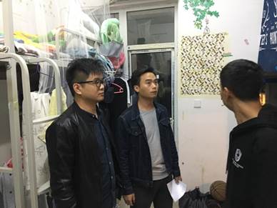 党委副书记任倩带队,全体辅导员一起深入学生宿舍进行安全卫生大检查。