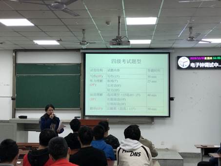 外国语学院曾益老师在武教A-102举行大学英语四级讲座。