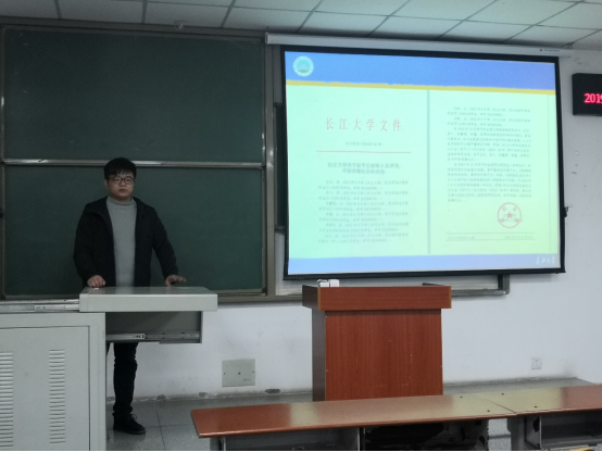 于教学楼A—105进行考风考纪及安全教育大会,学院全体本科及研究生班长参加会议,学工办老师潘志远、辅导员张严出席大会。