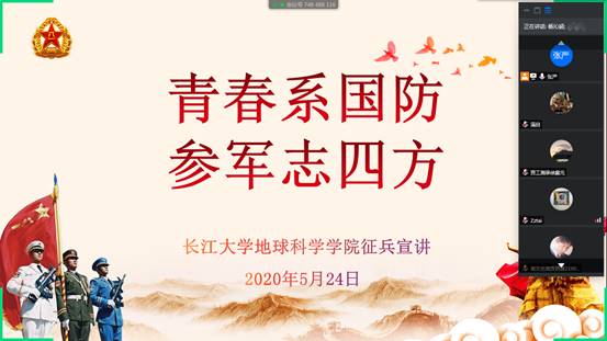 于5月24日晚7时,在腾讯会议召开“青春系国防,参军志四方”征兵宣讲主题活动。此次会议由张严老师主持。