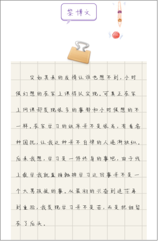 在课堂笔记展示中,学生们踊跃投稿的“学霸”笔记,不仅让我们了解到同学们上课的情况,更是让我们看到了同学们课下付出的努力。英语单词打卡、英语口语打卡等,无一不体现同学们的学习自律能力。大多数同学已经掌握了网课的节奏,即使每天都很忙碌,但同学们都在坚持打卡和记录笔记,让每一天都过得充实。