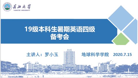 于7月15日晚八时通过雨课堂平台开展了线上英语四级暑假备考活动,本次活动由19级辅导员罗小玉老师主讲。