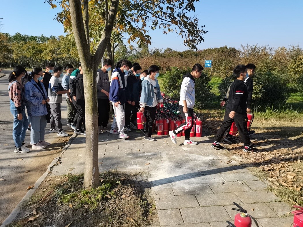 20级部分班级在校区保卫处的组织下,进一步学习了火灾等突发事件的处理流程并实际操作灭火器,增强大家在消防事故中的互救与自救意识。
