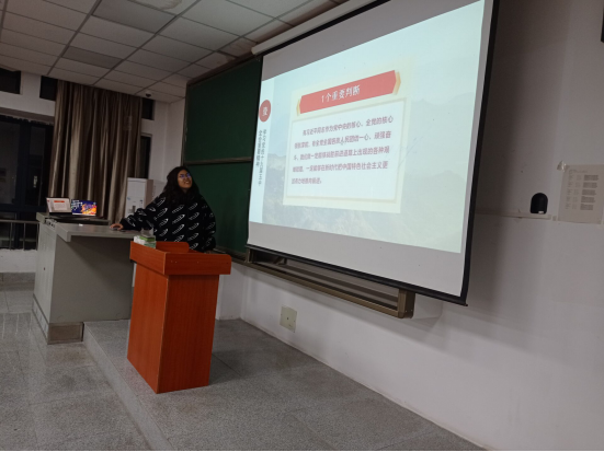 于11月24日举办“青春心向党,建功新时代”主题团会活动。本月的示范团支部为地信22001班,团会主体为“青春心向党-建功新时代”,主讲人是该班团支书鞠葙同学,班级全体同学参加。