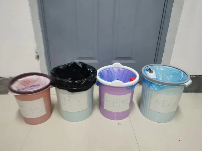 学生寝室中掀起“垃圾分类,从我做起”的新风尚,号召各宿舍从“小家”做起,进行垃圾分类,旨在培养同学们的垃圾分类意识,将垃圾分类观念刻入日常生活中。