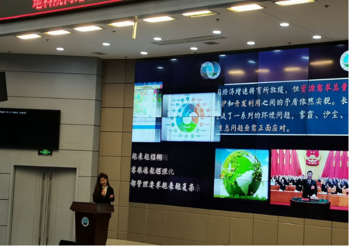 在石油科技大楼报告厅举办网络编程设计竞赛GIS组作品答辩会,王庆、蔡永香、朱正平、刘少华、张方利五位老师共同担任评委。