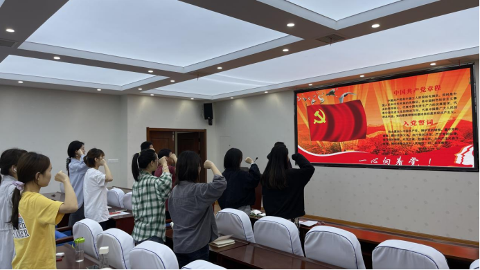 怀着澎湃且又庄严的心情宣读完入党誓词后活动进入第二项,大家集体诵读并学习了《中国共产党章程》第八章的内容:明确了党的纪律检察机关的设立、机构、产生、职权和基本工作规则等,随后深入学习《习近平总书记论青少年成长(第三辑)》,并研读习近平总书记关于《中共中央关于制定国民经济和社会发展第十四个五年规划和二〇三五年远景目标的建议》的说明,以及习近平主席在求是上发表的著作。