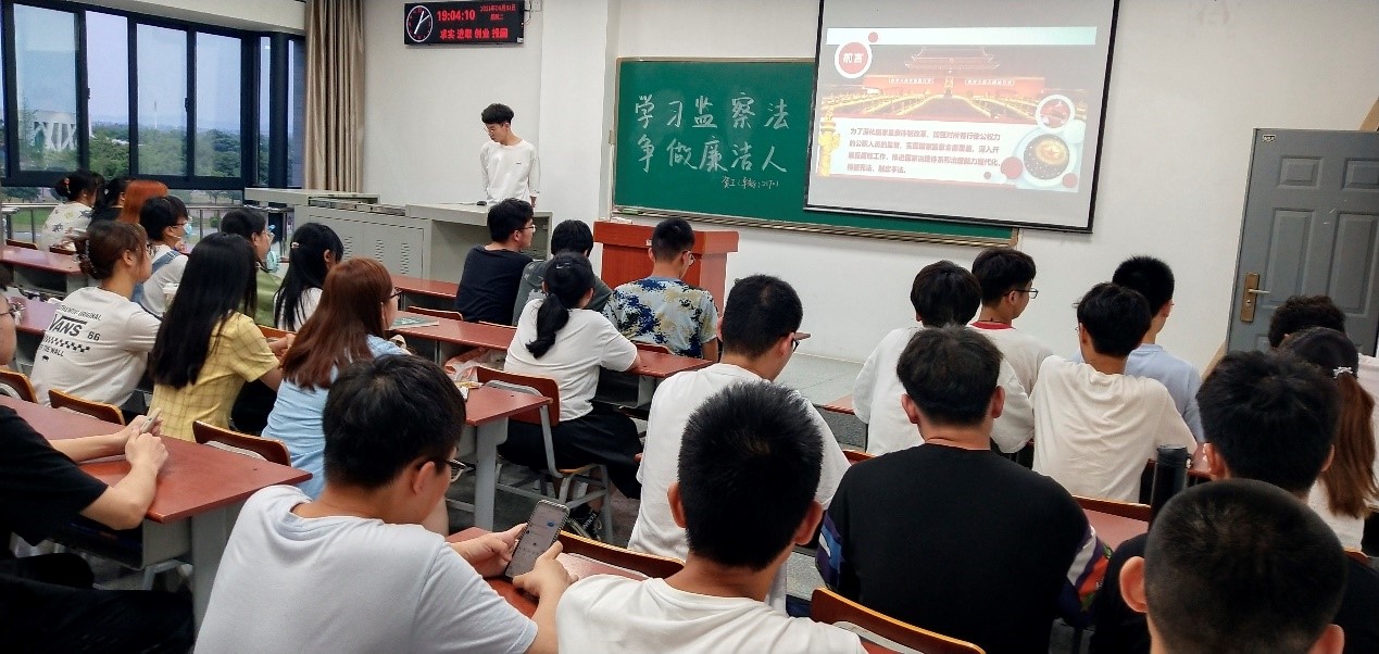 2017级毕业生在年级辅导员的组织下,于6月1日在各班教室展开了以学习《国家监察法》为主的主题班会。