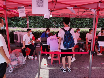 (通讯员 孔祥睿)9月3日8点半,满怀憧憬的2021级新生黄金妮及家长先于报到时间,已到校门口等候,正在搬运物资的老师和志愿者们迅速行动起来,提前上岗迎接新同学。学院领导丁四兵、任倩及新生班主任等多次来到迎新点了解新生报道情况并指导工作。