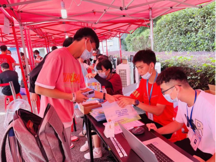 新生严格按照学校疫情防控规定要求入校。在来校前,所有学生已上传健康码、行程码、疫苗证明,报到时再次确认并消杀测温、查看核酸报告;其次,扫码签到进行资格审查,最后发放学生手册等物资,入住寝室。虽然戴着口罩,但大家微笑的眼神,热情的话语、忙碌的身影构成了有爱的迎新画面。