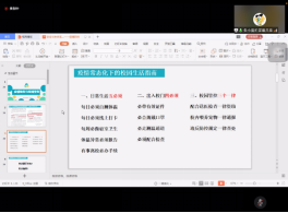 新冠肺炎防控指挥部通告(2021年第6号),呼吁大家在疫情常态化时期,要做到日常生活五必须、出入校门四必须、校园管控三个一律。同时对学籍管理规定、违纪处分条例、学位授予条件等规定中的重点内容进行解读,她在讲座最后号召同学们全方位锻炼自己,做一名正能量的长大青年。