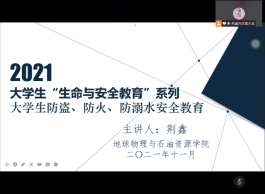 接下来,由地物学院荆鑫老师讲解有关防盗、防火、防溺水的注意事项。他以校区曾发生的真实事故,让同学们有了更真切的感性认识,并提醒同学们积极参加校区消防演习,了解逃生常识,对违规电器等可能引发事故的危险因素保持警觉。