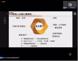 紧接着,油工学院商麟鑫老师以“心理危机”为主题,从心理健康的5种表现出发,详述12种心理危机的类型,明晰校园心理危机的识别方法和干预措施。最后,商老师给出了6种沟通方式,对同学们关怀有心理危机学生具有极强的指导意义。