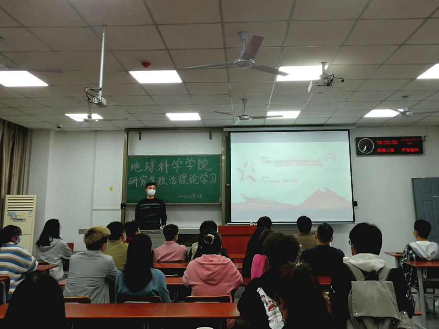 其次由梁博老师为大家讲解具体内容。他首先阐述了“坚定不移走中国特色社会主义法治道路、更好推进中国特色社会主义法治体系建设”的深刻内涵,就弘扬伟大建党精神、2022年全国两会精神、让坚持“两个确立”做到“两个维护”成为湖北政治生态鲜明底色等主要内容进行分析讲解。过程中,他不断鼓励、鞭策同学们不仅要深刻领悟党的政治理论知识,更要在生活学习中严格要求自己,脚踏实地的做人做事,为同学们指明了前进的方向。活动中,同学们积极发言,分享自己的心得和感悟,形成了良好的政治理论学习氛围。
