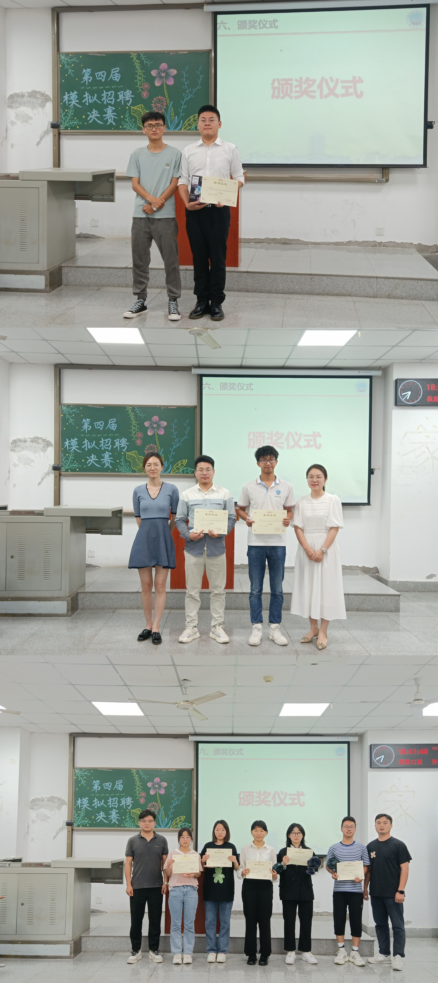 于武教A-106举办第四届模拟面试大赛。学院党委副书记任倩,第七届“长江学子”获得者李德成,辅导员王红桥、郭霖、潘志远、张严担任面试评委。