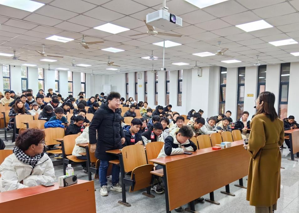 全体23级新生学生骨干齐聚于武教B108,学习“大学生常见心理问题与应对”,心理专干王红桥老师担任主讲。