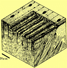 镁方解石成为平行于C轴的纤维状或陡斜面体示意图
